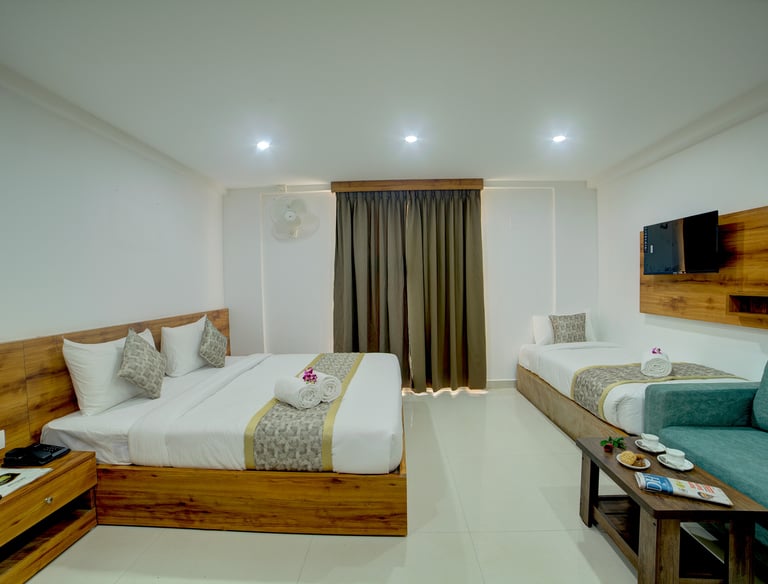 Treat yourselves to the ultimate relaxation experience in our Deluxe Rooms, designed with modern elegance and complete comfort.